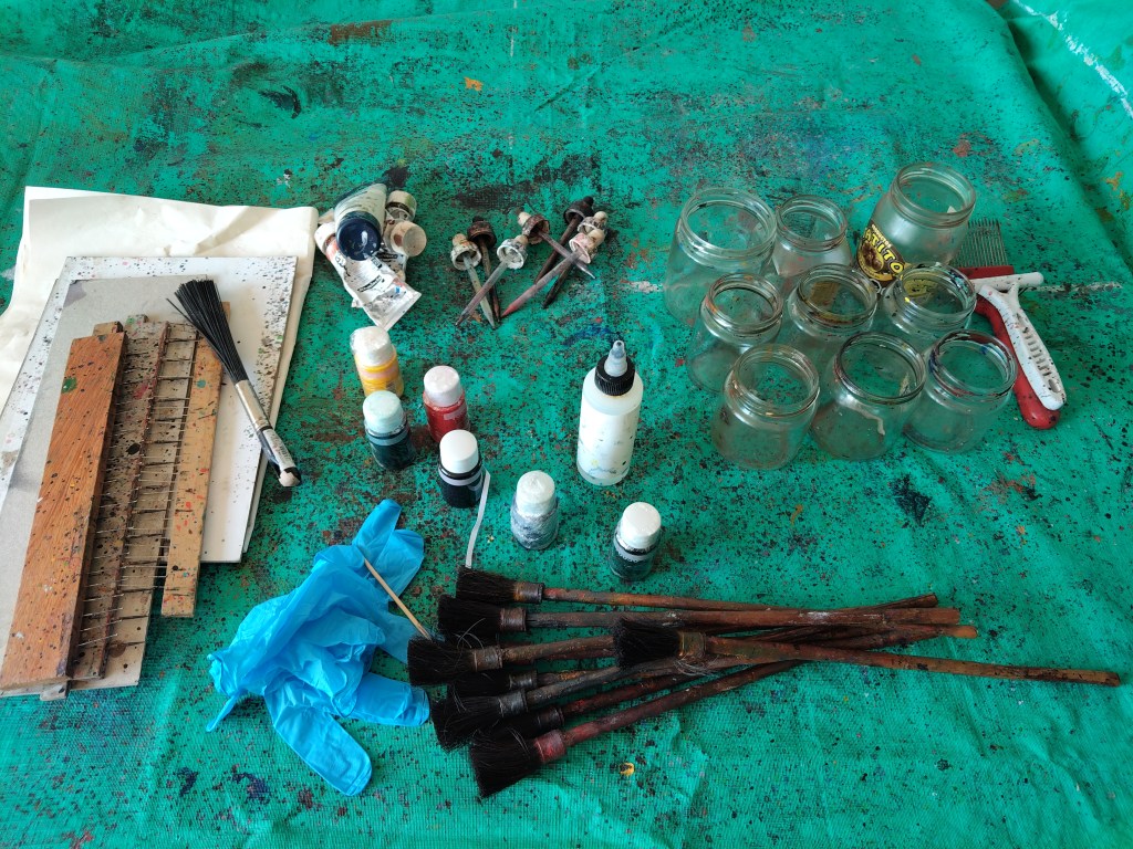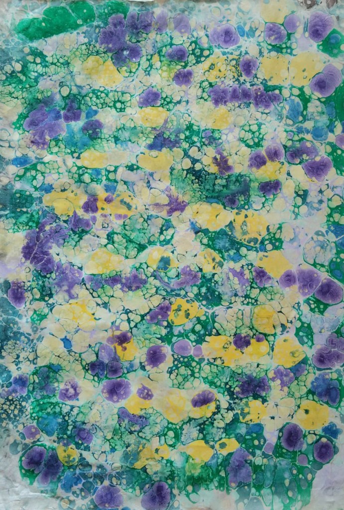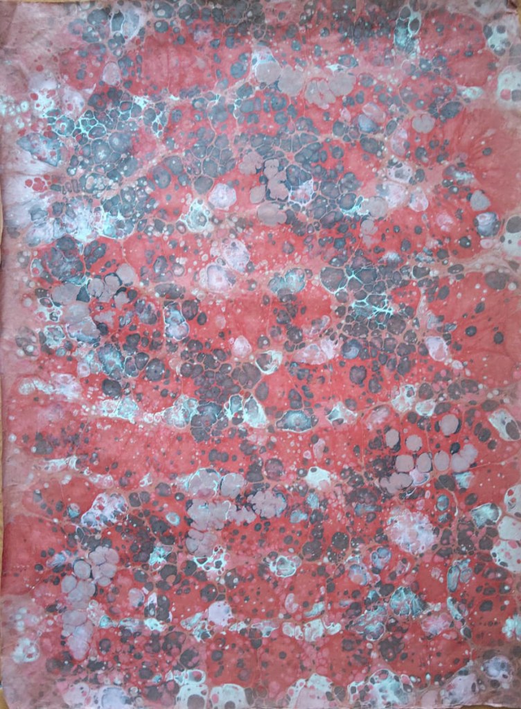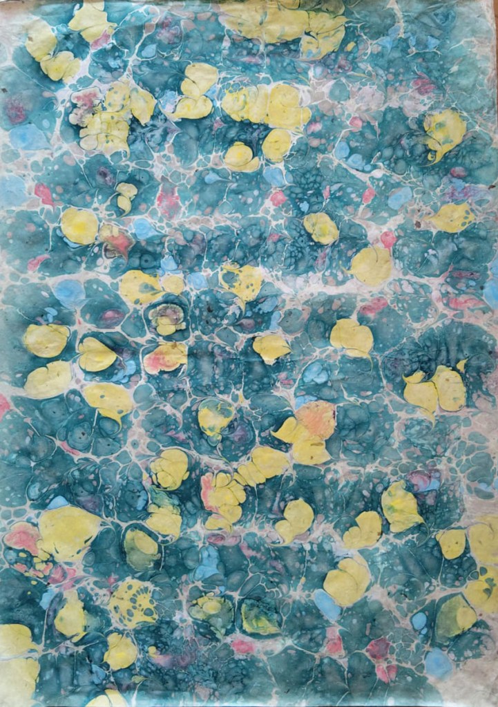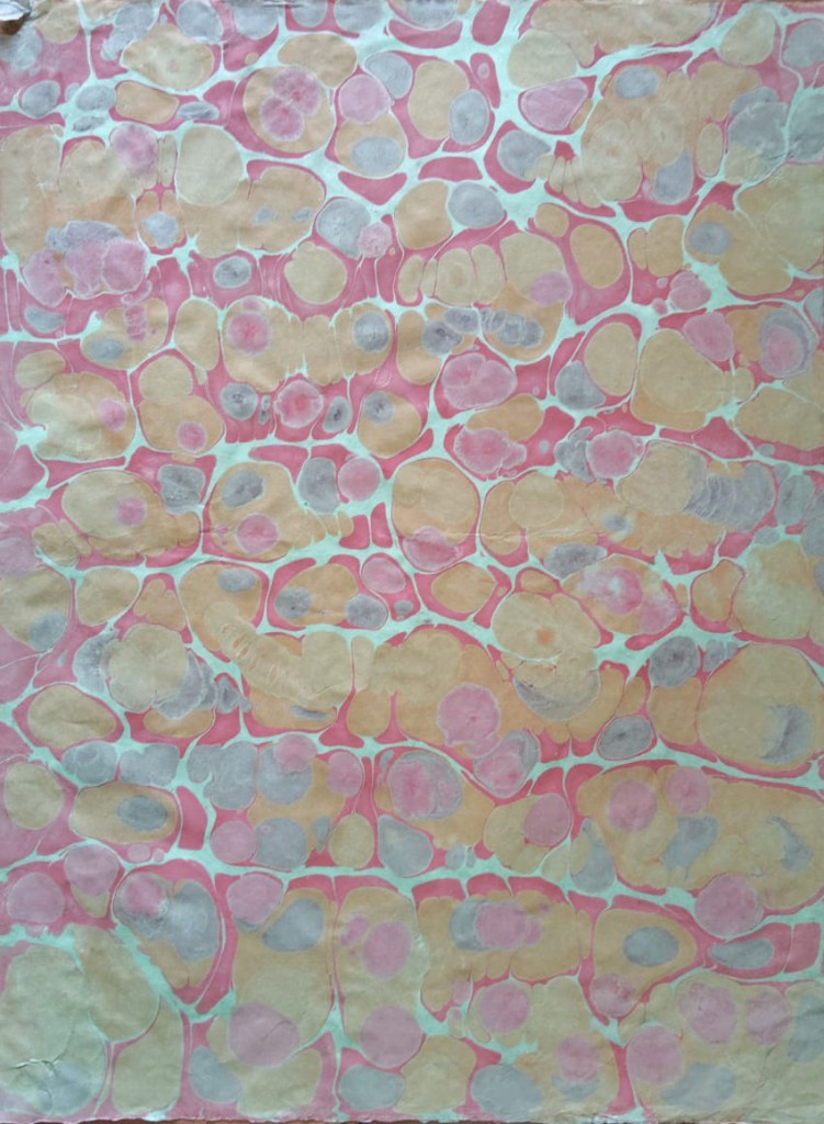 Selección y detalles de papeles pintados, con distintas técnicas: marmoleado, engrudo, trementina y con reserva, que son utilizados dentro o fuera de las encuadernaciones como papeles de guarda.