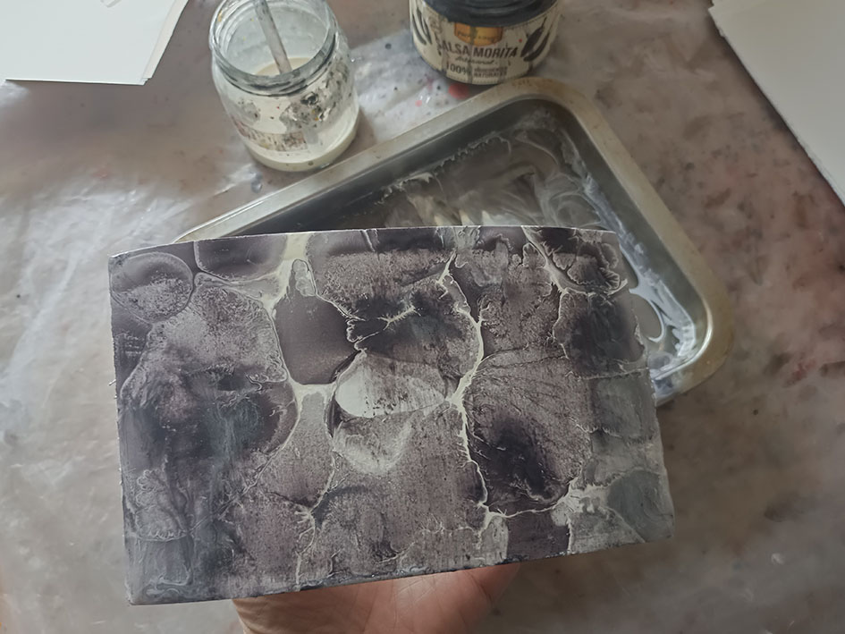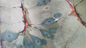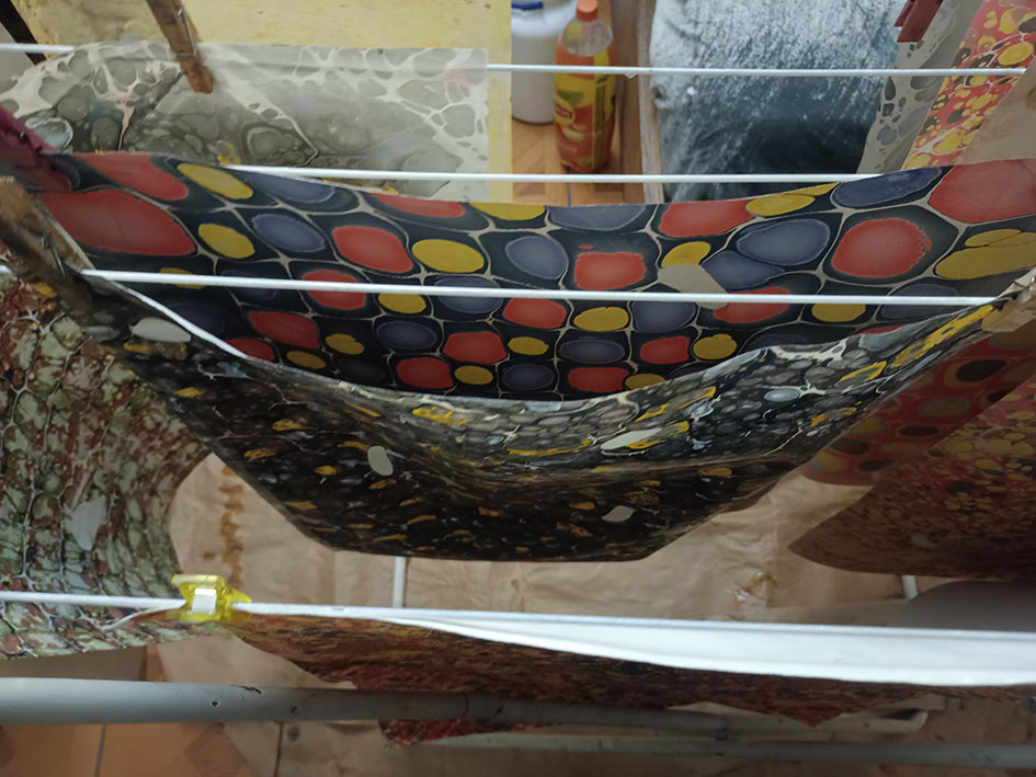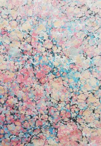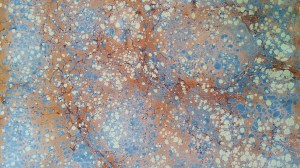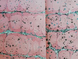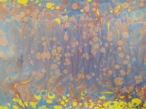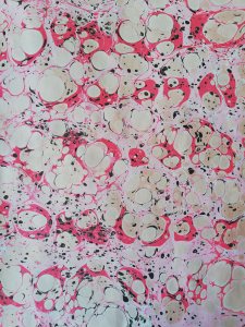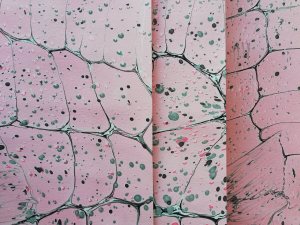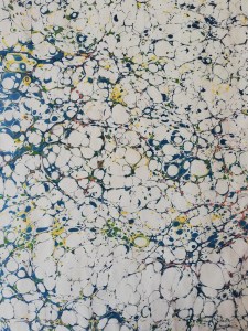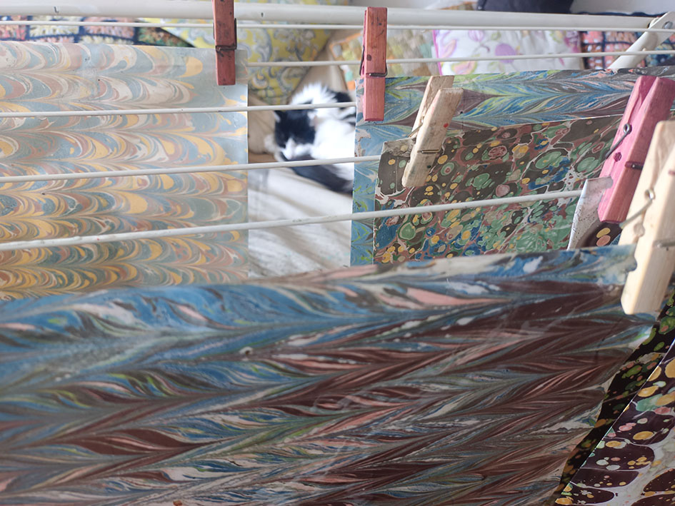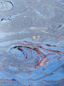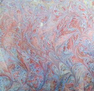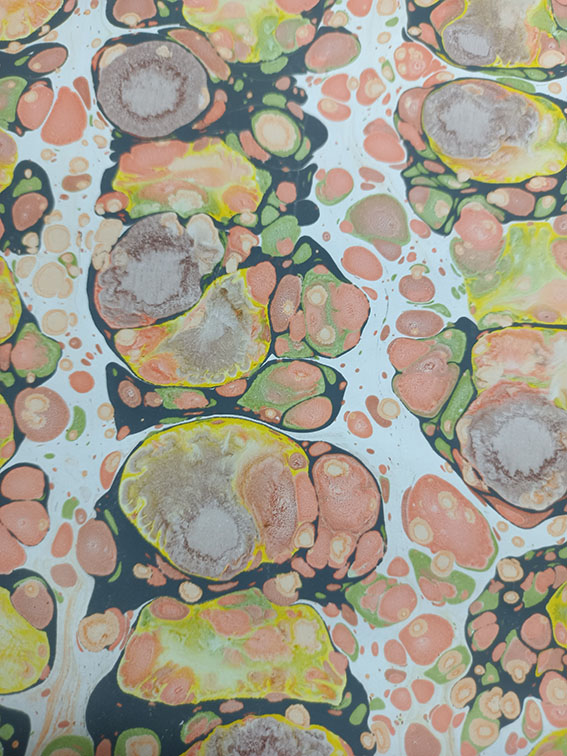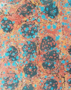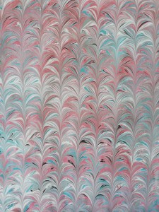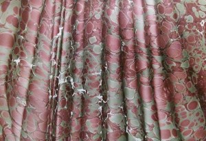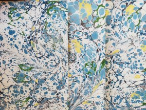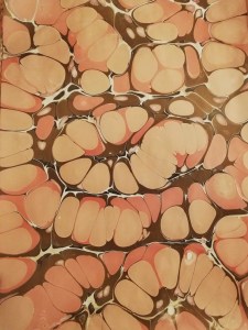 Selección y detalles de papeles pintados, con distintas técnicas: marmoleado, engrudo, trementina y con reserva, que son utilizados dentro o fuera de las encuadernaciones como papeles de guarda.