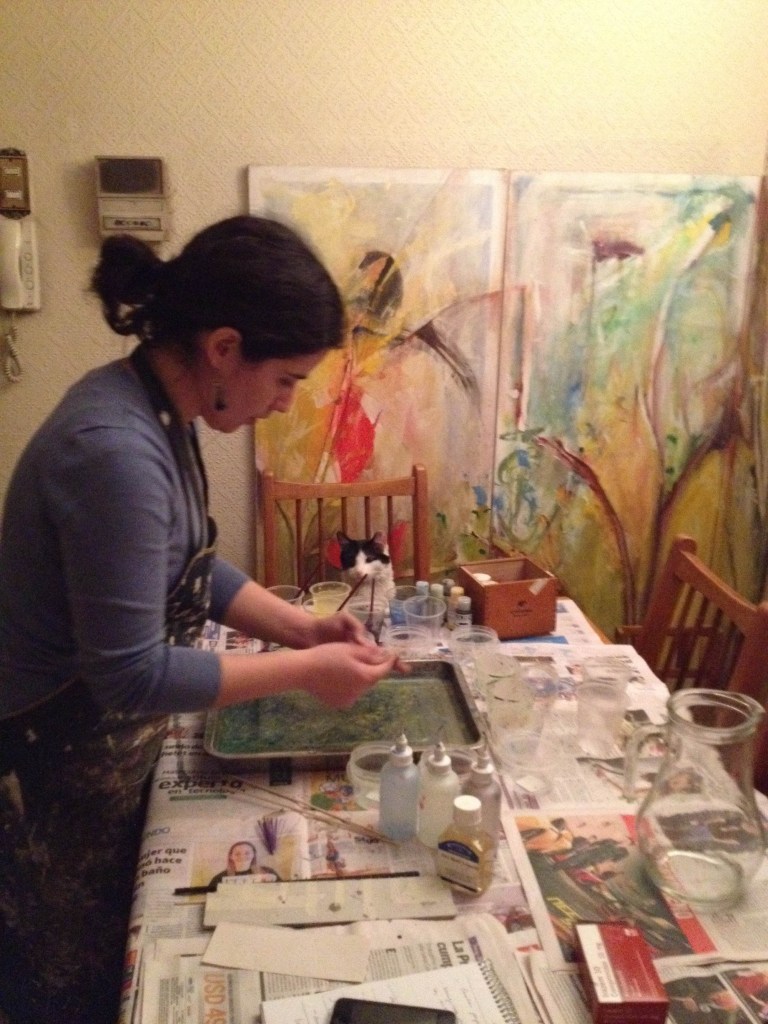 El 2014 me fui a Buenos Aires y aprendí el arte del papel marmoleado con Ato Menegazzo, posteriormente a teñir en shibori y batik con la artista chilena Francisca Nuñez Reveco por allá en el 2015.