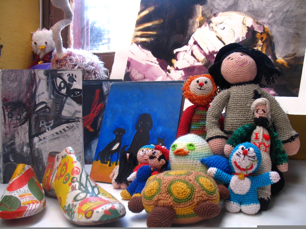 El 2007 me enfermé de un linfoma y me recuperé, empecé a tejer monos a crochet, pintar hormas de madera y hacer aros, y di inicio en el 2008 a mi marca.