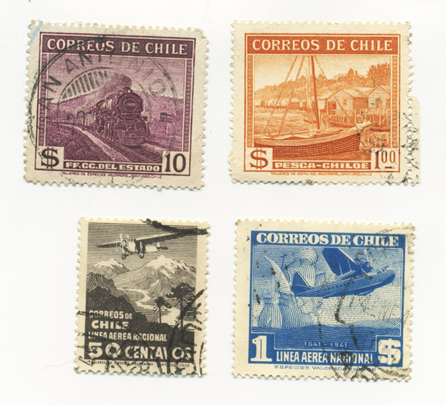 Me traje hace muchos años una caja de dulces Ambrosoli que tenía mi abuela Aurora en Barrancas, San Antonio. En la salita que estaba al lado de los dormitorios, habían muchas cosas que eran de mi abuelo Manuel, que murió en el año 1992. La cajita contenía 6 bolsas llenas de estampillas, dentro de cada una de ellas una lámina de cartón escrita con su letra: Estampillas chilenas corrientes (cantidad) – 1050. Me genera ternura imaginarlo sacando con cuidado la estampilla del sobre con el vapor de la tetera, pensarlo en la cocina, mientras mi abuela tal vez lo observaba de lejos, o entre los dos, y tal vez muy en silencio, poniéndose de acuerdo quién la afirma y quién la saca. Antiguamente se escribía, se correspondía en otros ritmos. También lo imagino llamando por teléfono, o cuando iba de visita, y aprovechaba de pedirle a sus amigos, o la primera vez que les contó que él las coleccionaba y encontrar en ellos otra alma filatélica.