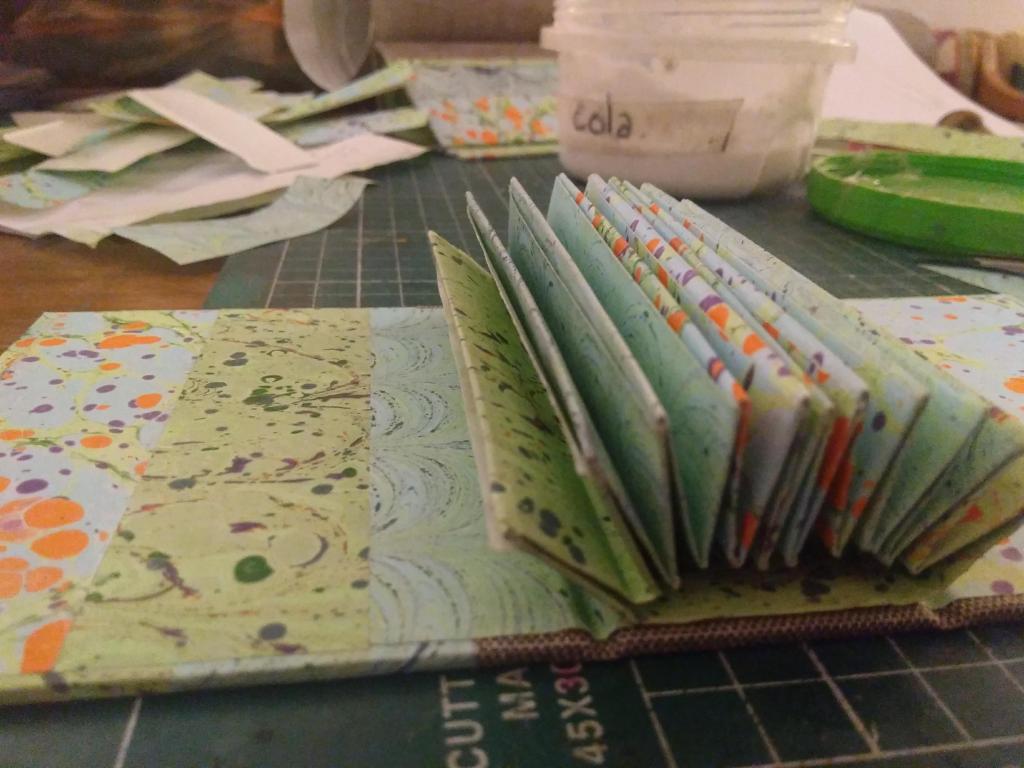 Estoy entusiasmada, a partir de este mes retomo las clases de encuadernación de forma presencial desde mi hogar/taller, desde que empezó la pandemia. Han pasado dos años y ya era hora. El año pasado me atreví con lo virtual y fue muy grato realizar durante un semestre clases online de técnicas de encuadernación inicial en el Centro Cultural La Barraca, y parece que ese formato llegó para complementar el aprendizaje de este oficio, porque funciona. También me atreví a ir a domicilio, me sentí muy bien.