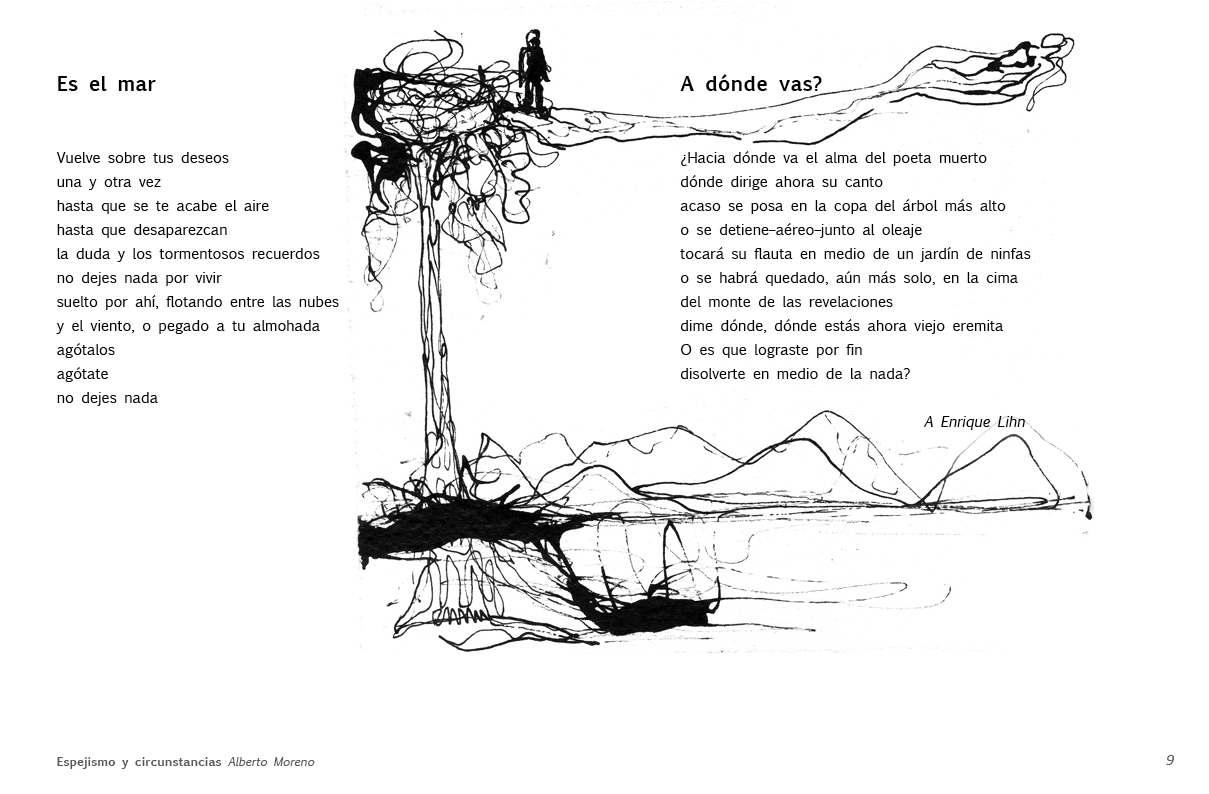 Espejismo y circunstancias. Diseño de portada, diagramación e ilustraciones para libro de poemas de Alberto Moreno. 300 ejemplares.