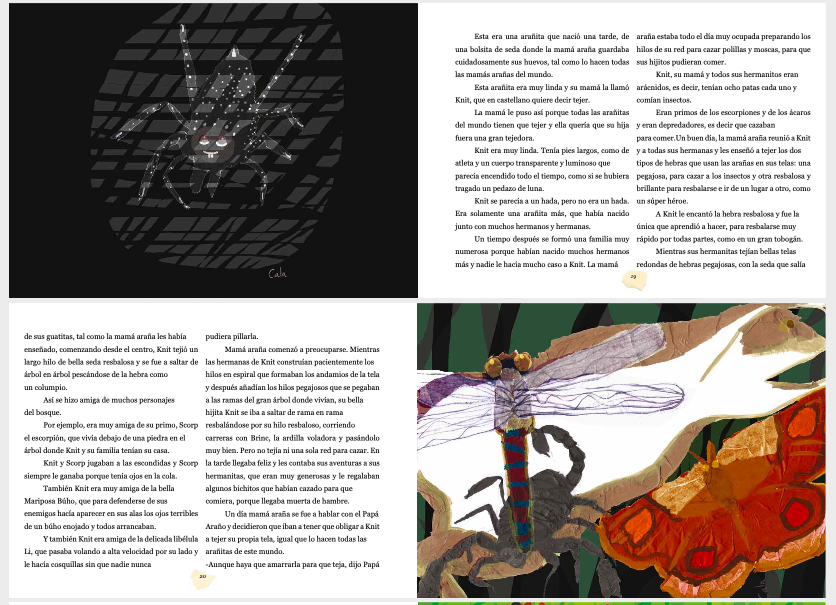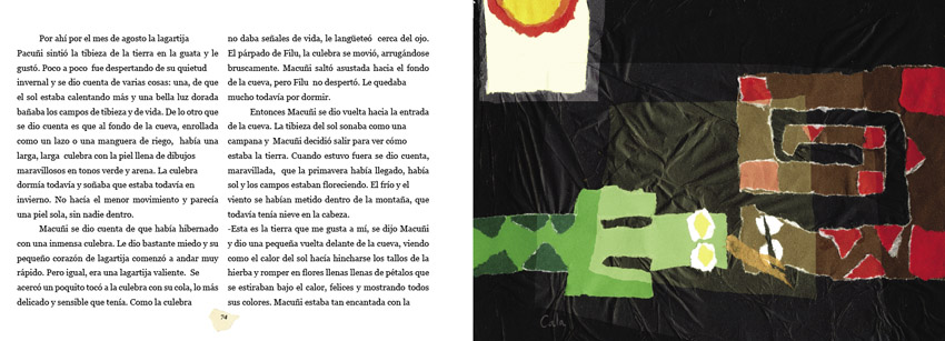 Diseño de portada, diagramación e ilustraciones para dos libros de cuentos infantiles de la escritora Ana María del Río. Siguiendo con la estética de las ilustraciones, se utilizó el mismo recurso de papel recortado a mano en los fondos en páginas de texto, los números de páginas y los fondos de títulos de los cuentos.