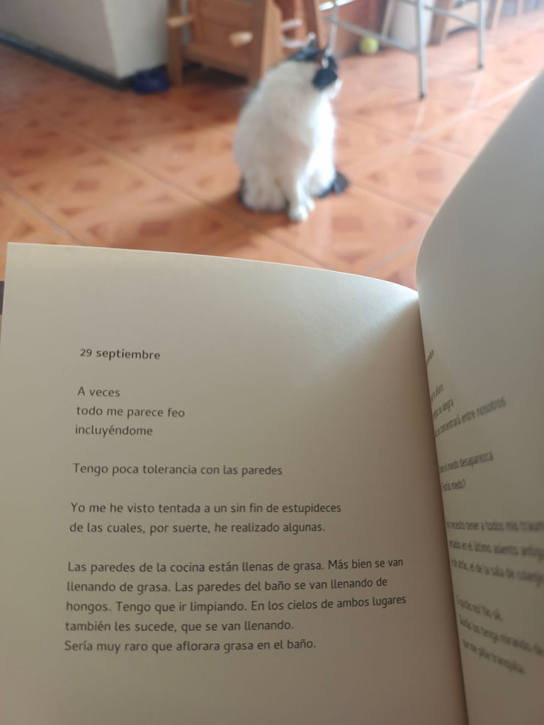 La historia de este libro, mi primer poemario publicado impreso, reúne prosas y poesías, en formato de bitácora, donde Aurora y Pixie, los gatos que vivieron conmigo, son inspiración en mis observaciones, sueños y reflexiones sobre cómo y dónde vivo. Relatos sobre gatos, también de aves, perros, y otras especies, viajes, vida de departamento y también al releer me doy cuenta que los gatos se transforman en amores, en hijos, y a veces en mi. Este libro fue apelado y seleccionado en 2024, por el Fondo del libro, en la línea creación, convocatoria 2023.