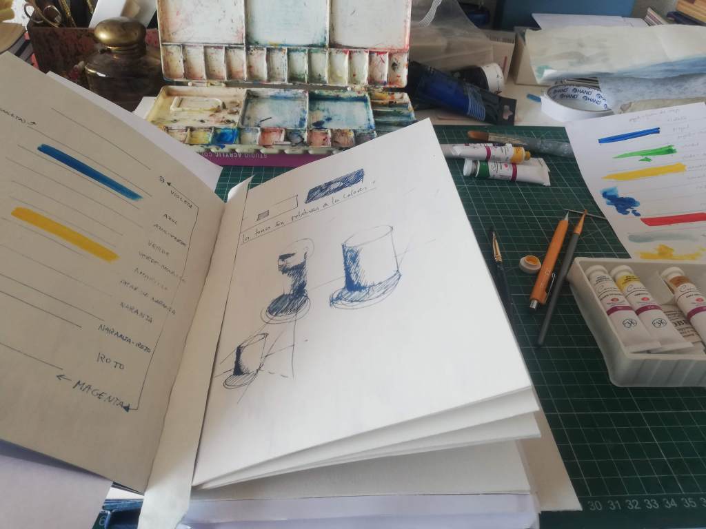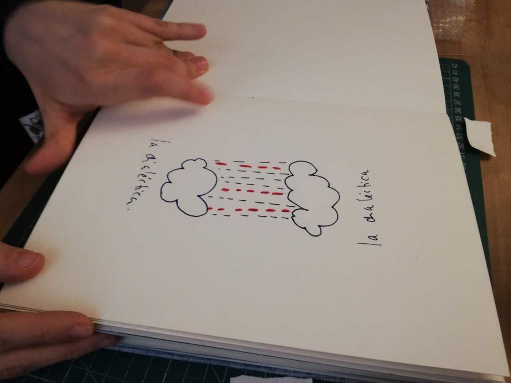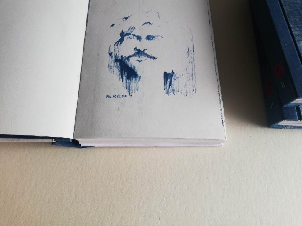 La primera página de la croquera «Es sólo una una situación inoportuna», coincidió además de la pandemia, con que formé los cuadernillos de las hojas de los dibujos contra la fibra, produciéndose eso tan inoportuno que generó tensiones en el papel.