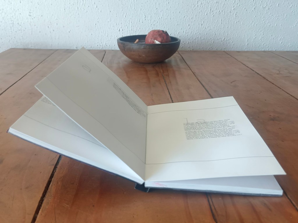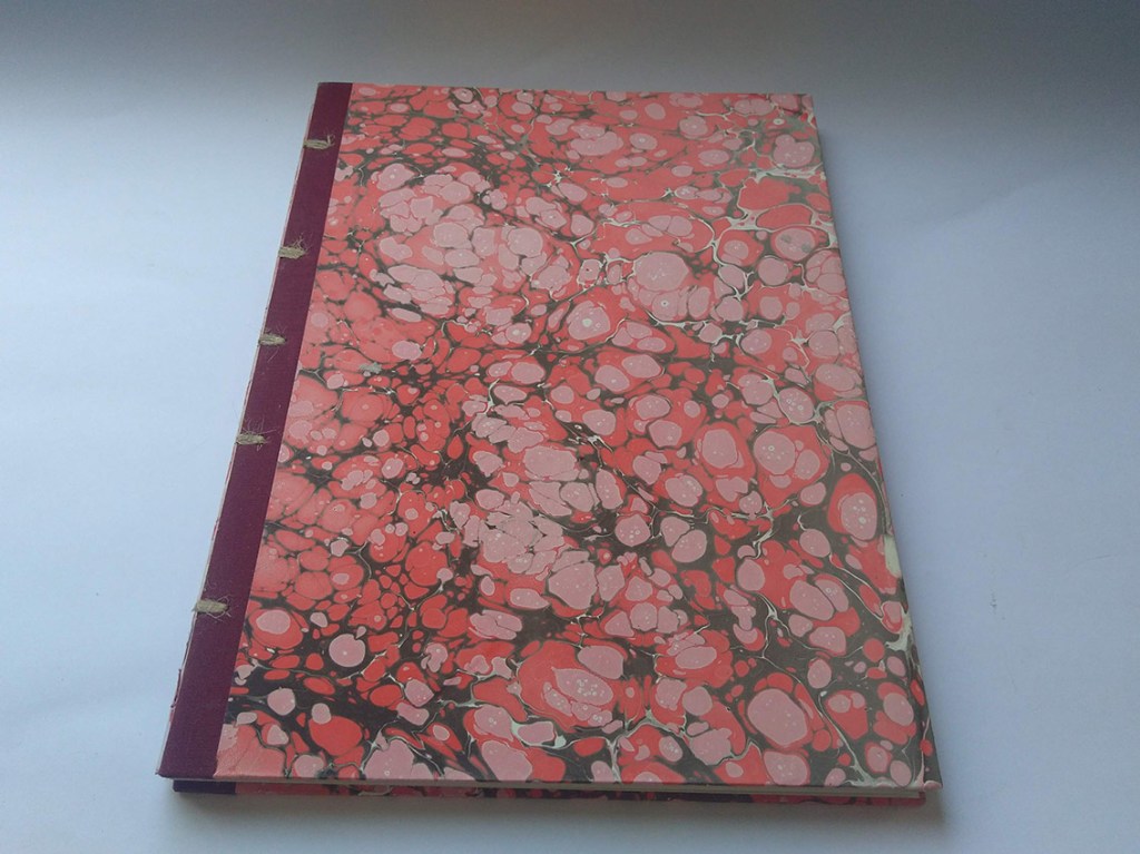 Sin costura. Tapa de vanol lijado, interior escrito a máquina sobre papel algodón de 300 g.